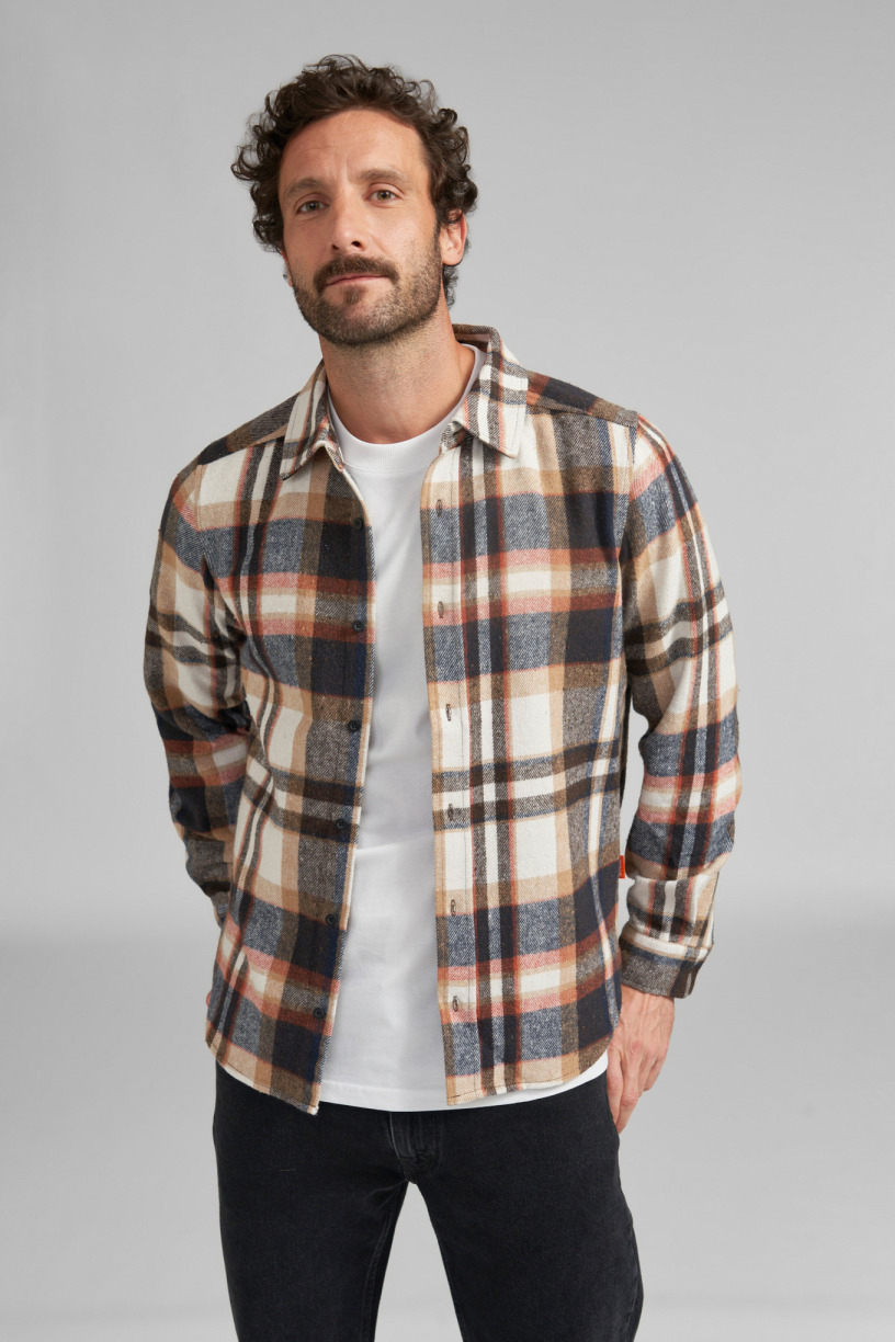 - La chemise se distingue par sa couleur brune tendance et ses carreaux intemporels qui donnent un look à la fois classique et moderne.
